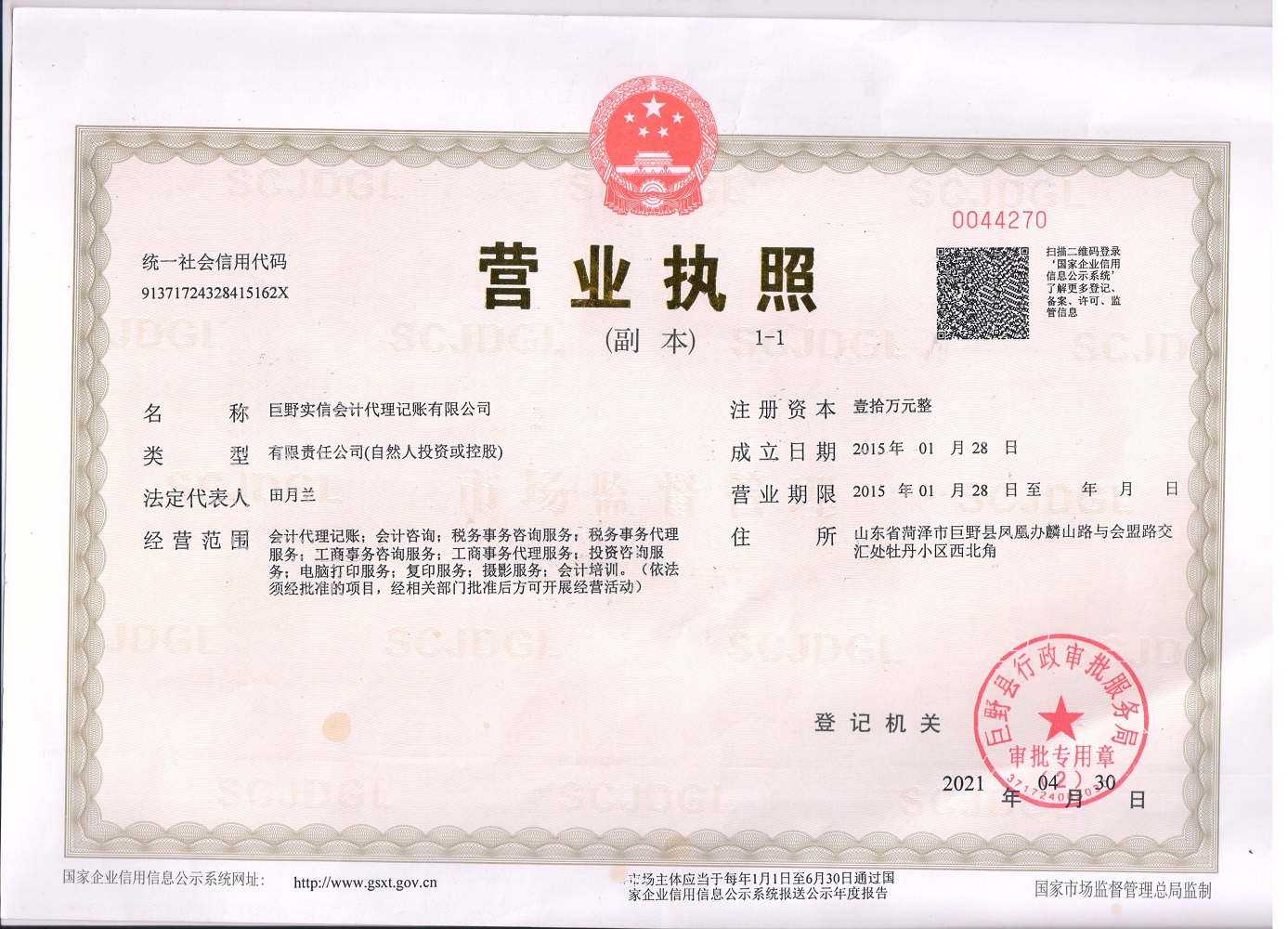 實(shí)信會(huì)計(jì)有限公司作為一家專(zhuān)業(yè)的巨野代理記賬公司,主營(yíng)業(yè)務(wù)有:代理記賬、菏澤園區(qū)代開(kāi)、巨野公司注冊(cè)、菏澤會(huì)計(jì)培訓(xùn)等業(yè)務(wù)。近幾年來(lái)公司主要致力于為小型微利企業(yè)提供公司注冊(cè)、會(huì)計(jì)培訓(xùn)、代理記賬等服務(wù)。